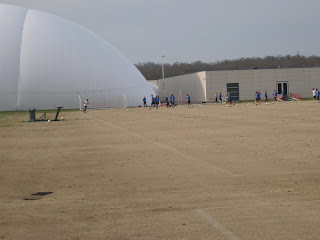 IMG's campus is equipped with a lightning detector that sounds an alarm that can be heard throughout the campus. We got a little scare when it went off this morning as everyone was picking up their gear, and the rain was actually coming down pretty hard on the short drive to the fields. But, as luck would have it, the clouds emptied out during the 3 minute drive, and the sun was shining before warm ups began.